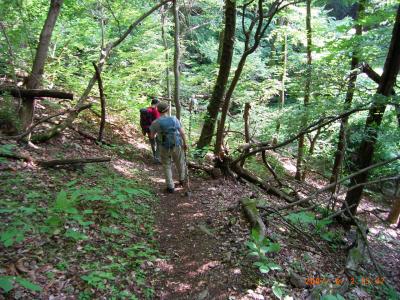 薄暗い沢筋の道ですが、それ故に頭上の新緑の鮮やかさが際立ちます。