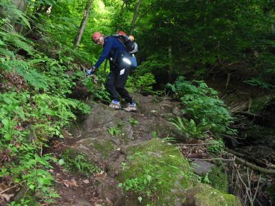 苔生した岩の上は滑らないように慎重に越えます。
