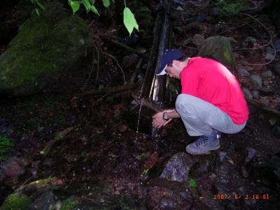 樋から落ちる水を飲んでいますが、安全かどうかは不明。