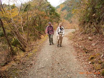林道歩きは楽なハズですが、普段歩いていない報いで足の裏が痛い。 |