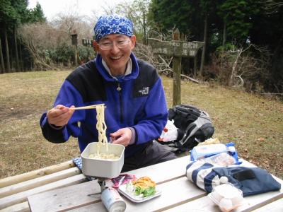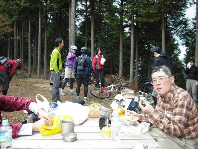 MTBグループが立ち去った後、出発前にセルフタイマーで全員(ったって3人ですが)で記念撮影。 |