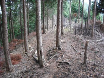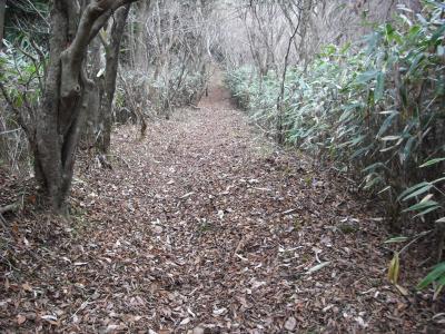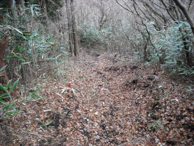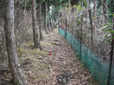 鹿柵に沿った平坦な道。に見える登り返し。 |