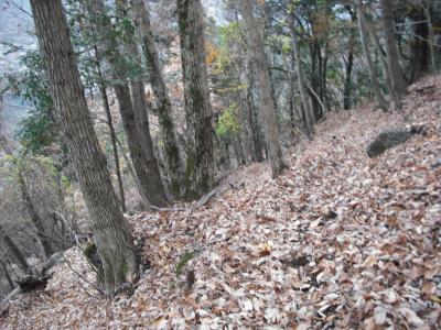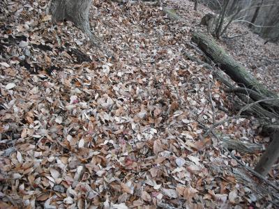 分厚い枯葉の絨毯を踏みながら・・・というところですが、 |